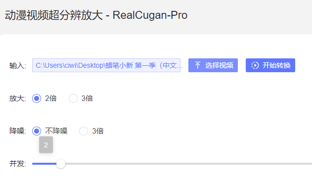 我们在工具选择视频,选择 2 倍放大 ( 也可以选分辨率 ),点击开始后等待十几分钟 ( 由视频时长、GPU 能力决定 )。
